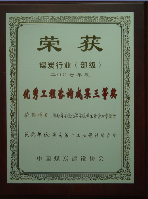 湖南省優(yōu)秀設(shè)計(jì)表?yè)P(yáng)金獎(jiǎng)(1984)
